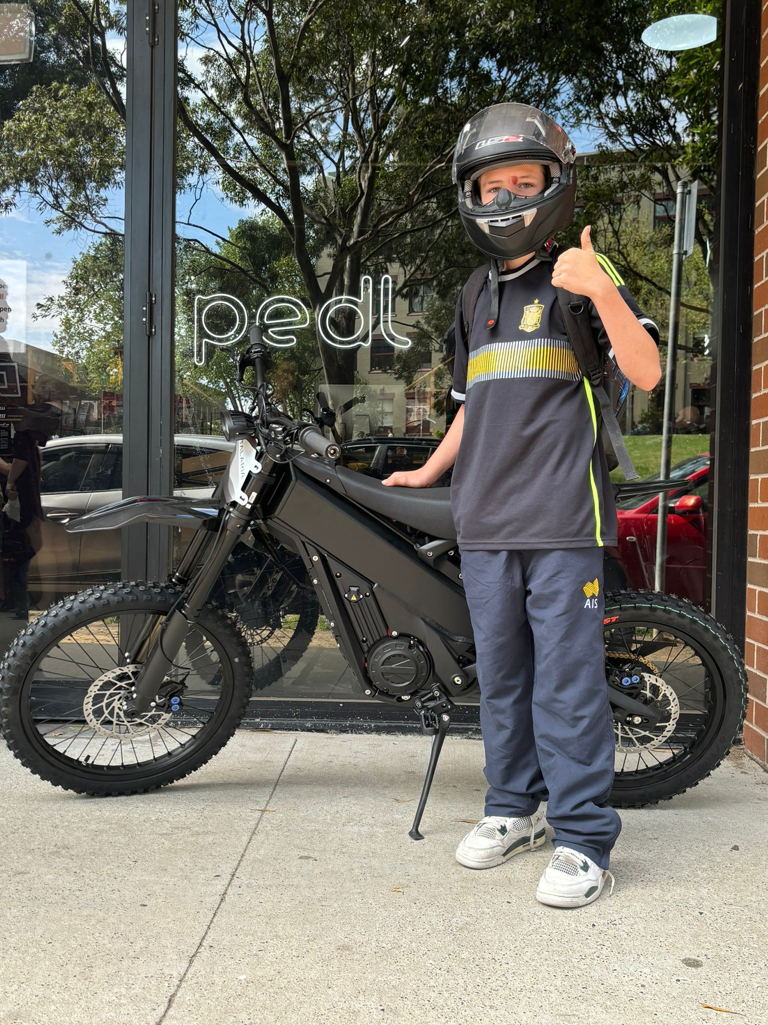 Switch from 250W to 1000W at a flick. Top 65km/h on private property.