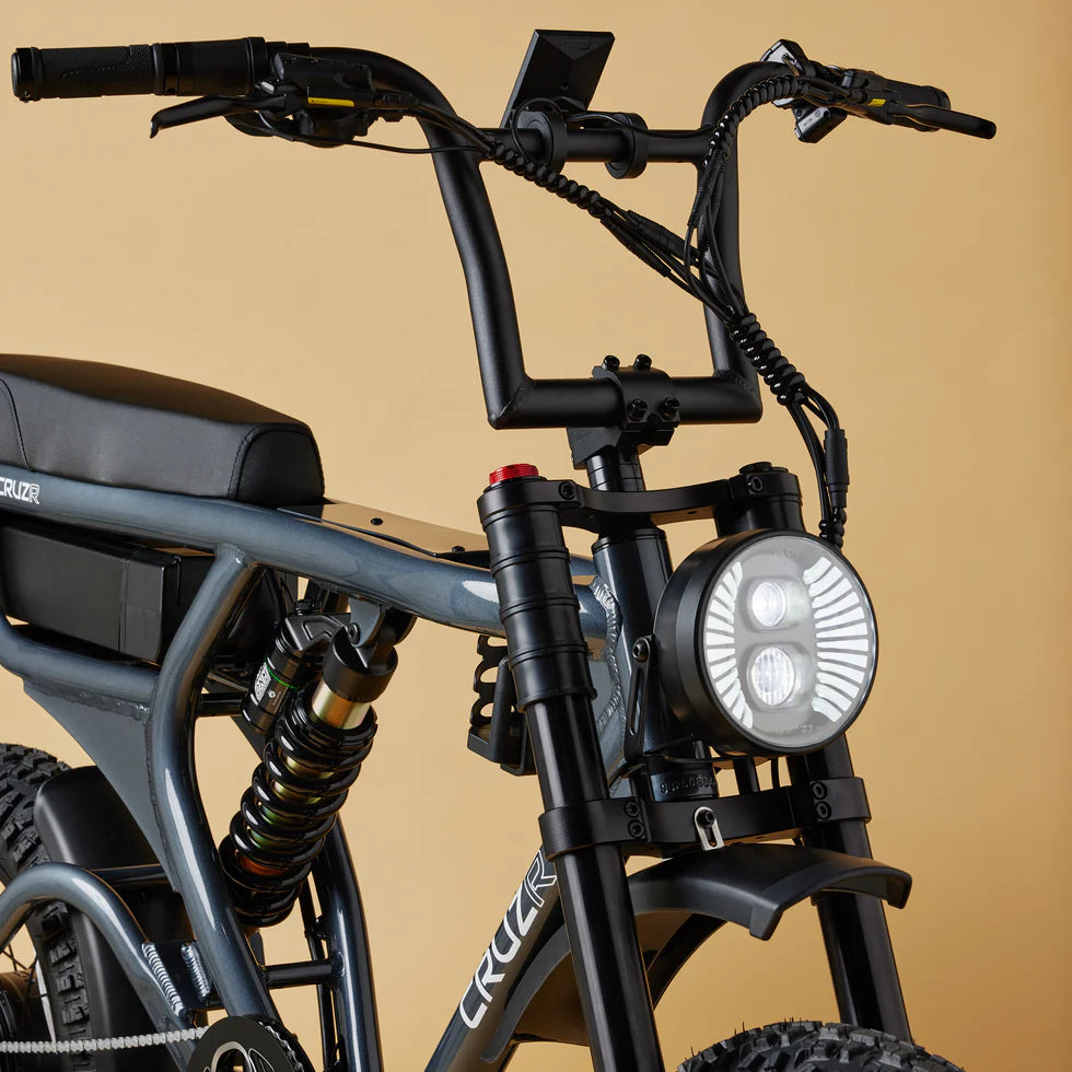 Premium DYMACE adjustable front fork suspension, paired with a heavy-duty DNM mid shock (1400lb), soaks up punishment with ease. Massive 4-piston TEKTRO hydraulic brakes keep all that power firmly under control. The half-twist throttle delivers instant response - smooth, predictable, relentless.