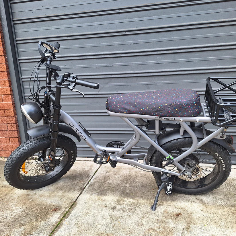 Turn heads and light up the streets with the Neon Splash Seat Cover! Bursting with vibrant neon hues and electrifying energy, this seat cover is for riders who crave a bold, eye-catching look. Whether you’re cruising at night or making a statement during the day, your e-bike will shine with unique style and flair.